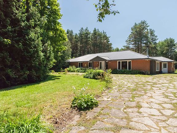 BEAUTIFUL 9.65 ACRE PROPERTY! LARGE BRICK BUNGALOW Located just North of Wiarton and only minutes to the Water at Colpoy's Bay. If you are looking for one floor living, privacy, acreage, plus having water and hiking trails and amenities close by, this fabulous property is for you! This very spacious, Solid Brick Beauty has 5 Super Large Bedrooms and 3 Bathrooms with abundant living space and has had many improvements over the years including a metal roof, windows, propane furnace, some flooring, bathroom upgrades and more. Tons of character and charm with hardwood flooring, the woodstove, open kitchen / dining area that has a walkout to a large patio. Great entertaining space at the back, firepit area and a barn for storage. Follow the nature trails that lead to a gorgeous and well appointed Guest Bunkie or Studio tucked away in the woods. If you are looking for a Private Retreat in a Great Location, this is a must see!