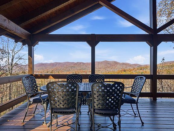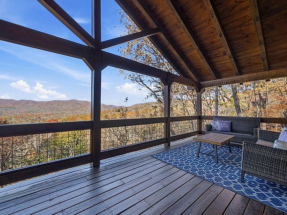 You'll spend most of your time on the spacious front porch, soaking in the breathtaking long-range mountain views and fresh air! As you enter this peaceful mountain community, you'll instantly feel like you're on vacation. Easy, paved roads lead you to this gorgeous cabin featuring a paved driveway with ample parking for family and friends. A detached one-car garage offers additional parking or extra space to store all your toys! Off to the side of the driveway, a charming fire pit nook awaits—nestled in its own gravel enclave with beautiful mountain views, perfect for gathering around on cool evenings. Inside, this lovingly cared-for cabin is immaculately kept and beautifully maintained, featuring three bedrooms, two bathrooms, and a versatile bonus room that can serve as a fourth bedroom, office, or gym (complete with closet). Recent updates include wide-plank hardwood floors, granite countertops, updated cabinetry, and tiled showers. The kitchen offers a large island perfect for holiday spreads, while the dining and living areas feature expansive windows that frame serene mountain views for miles. The finished lower level provides multiple rooms ideal for hosting guests or creating the ultimate game or entertainment space. Don't miss this opportunity—ideal as a short-term rental or full-time residence. Conveniently located between Blue Ridge and Ellijay, this sought-after Cherry Lake cabin offers the best of both worlds: stunning mountain views, modern updates, move-in-ready condition, and mild paved roads with easy access to town. Most furniture conveys, and because this is not an STR, this home shows no wear and tear. Be sure to view the 3D Tour for a virtual walk-through!