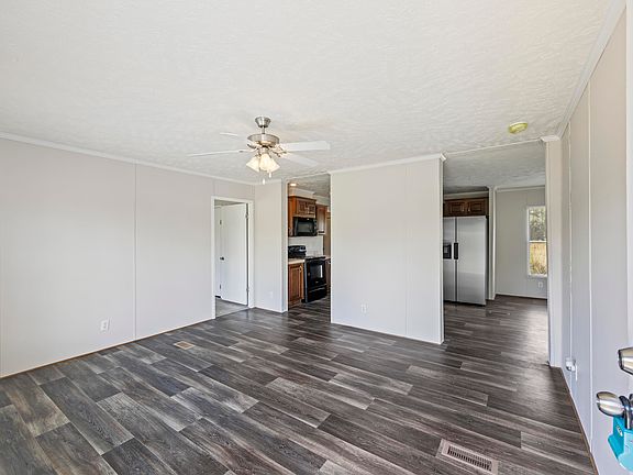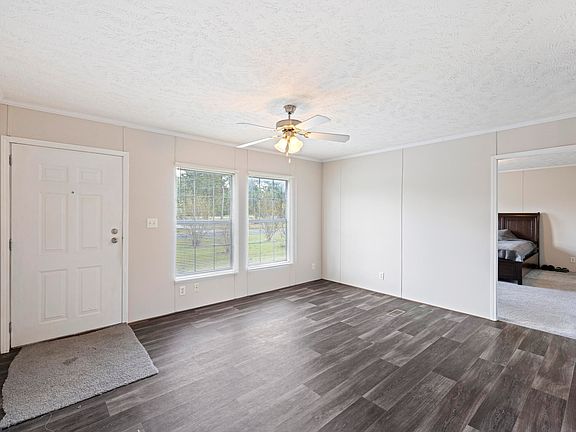 This charming 2007 Clayton manufactured home features three spacious bedrooms and two full bathrooms. Set on a generous one-acre lot, the property also benefits from a private well and septic system, providing both convenience and privacy. The inviting living room flows into a cozy den equipped with a fireplace, perfect for relaxation. The well-appointed kitchen includes a range, microwave, and dishwasher, catering to all your culinary needs. Recent updates include fresh paint and new flooring throughout, along with a new heat pump for efficient central heating and air conditioning.