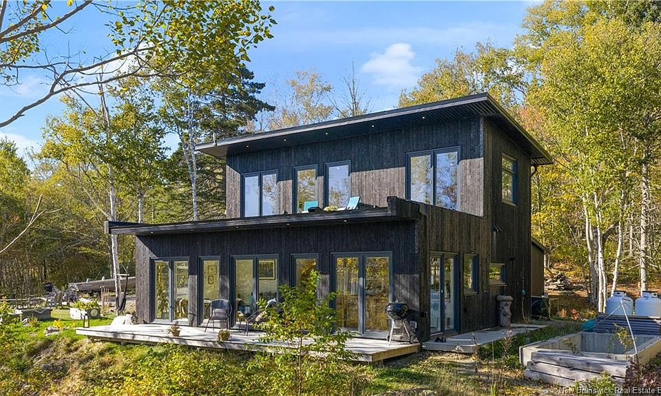 Set on 4.72 private acres with over 300 feet of oceanfront, this passive solar home looks out toward Grand Manan and the open horizon, where sky and sea merge in ever changing light. Eagles soar overhead, whales pass offshore, and seals visit the cove, this is everyday life in this rare coastal sanctuary. Sheltered by granite cliffs, the home combines warmth and simplicity with modern design. It features Legalett radiant concrete floors, south facing windows, an on demand hot water system, and a Jotul gas fireplace. Lime wash walls and minimalist lines create a calm, natural atmosphere. The exterior, finished in Yakisugi (charred cedar using the Japanese Shou Sugi Ban method), blends seamlessly into the forest and stone. A concrete pool and sauna foundation are already in place, ready to become your private ocean view spa. A pine workshop and cedar shed, both protected with traditional natural tar, complete the property. The workshop can easily be converted into a guesthouse or artist’s studio. A unique home where nature, architecture, and light exist in perfect balance built not to stand out, but to belong.