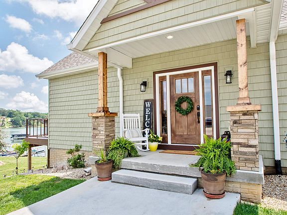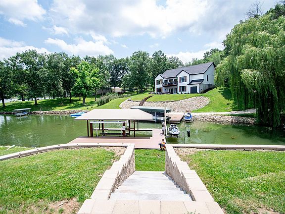 This stunning 4BD, 4BA lakefront home is the epitome of luxury living! This property offers a unique opportunity w/ attached in-law suite making it perfect for multi-generational living or hosting guests in style and comfort. Built in 2023, the home features an open-concept living area and soaring vaulted ceiling w/ wood beams. The stone fireplace adds to the home’s welcoming appeal. You’ll love the large windows which showcase picturesque views of sparkling water. Stylish kitchen is equipped with solid surface counters and custom cabinetry. The spacious primary bedroom is a true retreat complete w/ walk-in closet and luxurious spa-like bathroom. The finished walk-out basement adds family room, wet bar, two bedrooms, bathroom and large storage area. You’ll appreciate the luxury vinyl flooring throughout the home which adds to home’s warmth and elegance. Outside, the expansive deck is the perfect spot for enjoying panoramic views. The lower patio is a great place to relax in the included hot tub. Enjoying the lake doesn’t get much easier as the home is just steps from the water’s edge. At the waterfront, you’ll find an upgraded, permanent boat lift with composite decking. The in-law suite is a separate living space with own entrance complete with bedroom, bath, kitchen and living room. This suite also features a private deck. How could this property get any better?! Top it off with 3-car attached garage, large concrete driveway and unfinished storage area above garage.