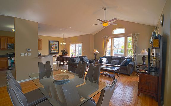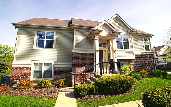Move in ready beautiful East/West exposure end unit townhouse with patio balcony off dining and backs to a green space. 3 bedrooms and 3 full baths! The vaulted ceilings and natural hardwood floors welcome you to an open floor plan on the main floor with comfortable and flexible living dining layout. The master suite holds large furniture, has a custom closet design plus double sinks and separate tub/shower. Newly remodeled basement is a large living area plus a large separate 3rd bedroom, walk in closet and full bath with designer features floor to ceiling. The basement has refreshing natural light from several windows surrounding the room. Close to METRA for simplified commuting. Acclaimed District 204 Schools!