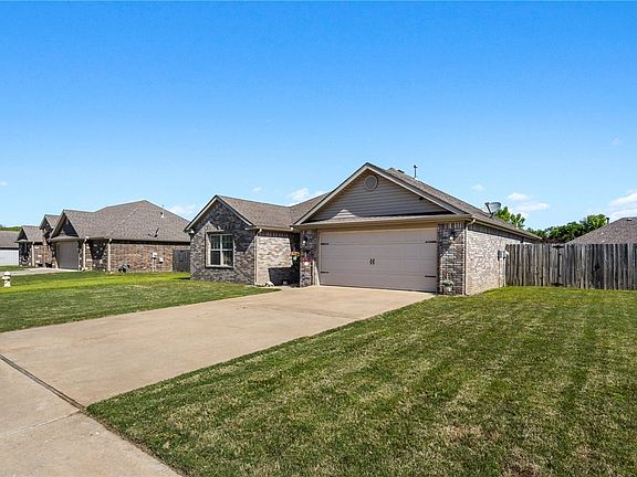 This home is sure to go quickly! Take advantage of this inviting and comfortable 3-bedroom, 2-bath residence. The generous living room with vaulted ceilings and a fire place offer a bright and welcoming environment. The kitchen features a casual dining space and sleek granite countertops. This house has 2 large walk in closets. One in the primary and one in the guest bedroom! Located in a quiet, peaceful neighborhood with wonderful neighbors, this home also offers quick access to the interstate. Plus, the University of Arkansas is just 7 miles away! Washer, dryer, and fridge to convey with accepted offer.