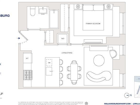 The radiant lifestyle of Williamsburg Wharf continues inside with spacious, light-filled Studio, One-Bedroom, One-Bedroom + Home Office & Two-Bedroom residences that feature oversized windows and bespoke finishes with select residences boasting dramatic views and private terraces.