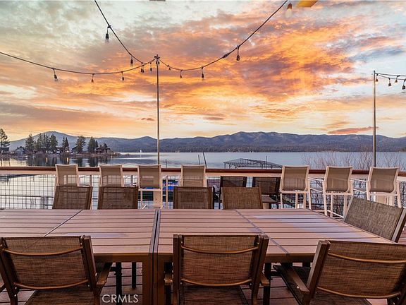 LOCATION, LOCATION, LOCATION!!!!!!! LUXURIOUS LAKEFRONT LIVING NEAR THE VILLAGE IN A CUL DE SAC WITH SPECTACULAR LAKE VIEWS, LOCATION AND BEST SEATS FOR THE 4TH OF JULY FIREWORKS!!!!!! Home features: AC (which is pretty rare in Big Bear) ~ New roof in 2020 ~ New trex decking in 2023 with a spectacular setting, including artificial grass ~ New upgraded electrical panel in 2020 ~ Added hot tub in 2020 ~ Approximately 90 feet of lake frontage ~ 3 slip boat dock with canopy ~ Tesla charger ~ solar panels ~ hardwired ring security cameras and doorbell ~ play room is being used as a 5th bedroom~ living room fireplace ~ the family room includes another wood burning fireplace and is adjacent to the spacious chef's kitchen with old diner style eating booth ~ Primary bedroom with fireplace and private balcony overlooking the lake ~ secret Attic space in one of the bedrooms. This is one of a kind home!!!!!!