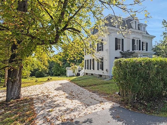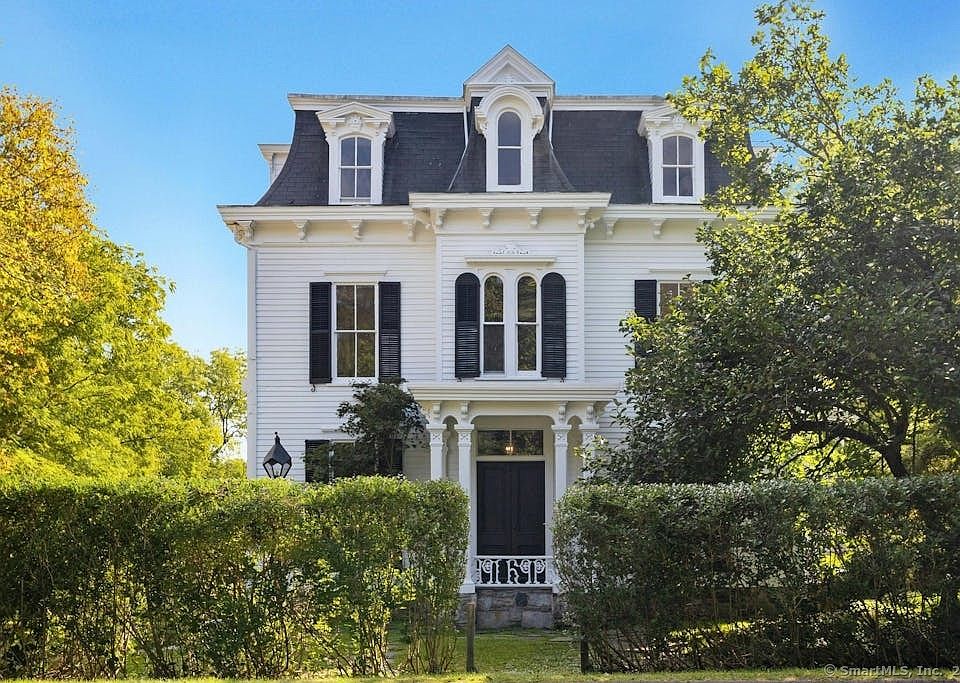 Additional finished third-floor space (1,015 sq ft) not included in MLS square footage, bringing the total living area to approx. 3,397 sq ft. This historic Ridgefield landmark, known both as the Lewis June House and the Scott House, stands as one of the finest preserved examples of French Second Empire architecture. Listed on the National Register of Historic Places in 1984, this unique property has a rich history of intriguing owners, including its original owner, Lewis June, who co-owned the Barnum & Bailey circus. It is even rumored that circus animals "wintered" on this very property! The home is adorned with original architectural details that exude charm and sophistication. The first floor features impressive floor-to-ceiling windows, gleaming wood floors, and a classic center hall curved staircase. Recently updated, the house has been freshly painted throughout and now boasts a new kitchen and luxurious bath. The 2.70-acre property also includes modern amenities such as a newer AC system, an oil burner, and a new split system in the third-floor bonus room. Whether you are a history enthusiast or someone looking for a unique, elegant home, the Lewis June House offers a rare opportunity to own a piece of Ridgefield's storied past with all the comforts of modern living. Please note the the fireplaces are decorative and non-working and that the exterior studio is in "as-is" condition.