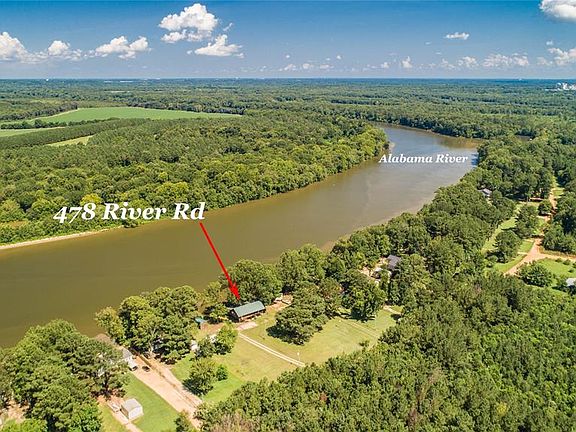 Stunning views of the Alabama River! Looking for full time living or a weekend river get away? This is it! Situated on two and a half level lots with 225 feet of water frontage, this two bedroom, two and a half bath home features upper and lower decks for great outdoor living! Inside, a large open concept living, dining, and kitchen all share large vaulted scenes with windows that carry fantastic river views! Two bedrooms, and two baths are on the opposite end of the home, with the master having direct walk out access to upper deck. Plenty of storage and parking under neath the property with an extra parking pad adjacent to back entrance walk out. The property also features a large 14x32 workshop that is insulated, drywalled, and fully wired that would be a great addition as a tiny home! Even possible rental income! Even more storage with a 18x32 carport for the weekend boat and toys! to complete this property, the neighborhood has two boat ramps for easily getting on the river. Schedule your appointment to view this great river property today!
