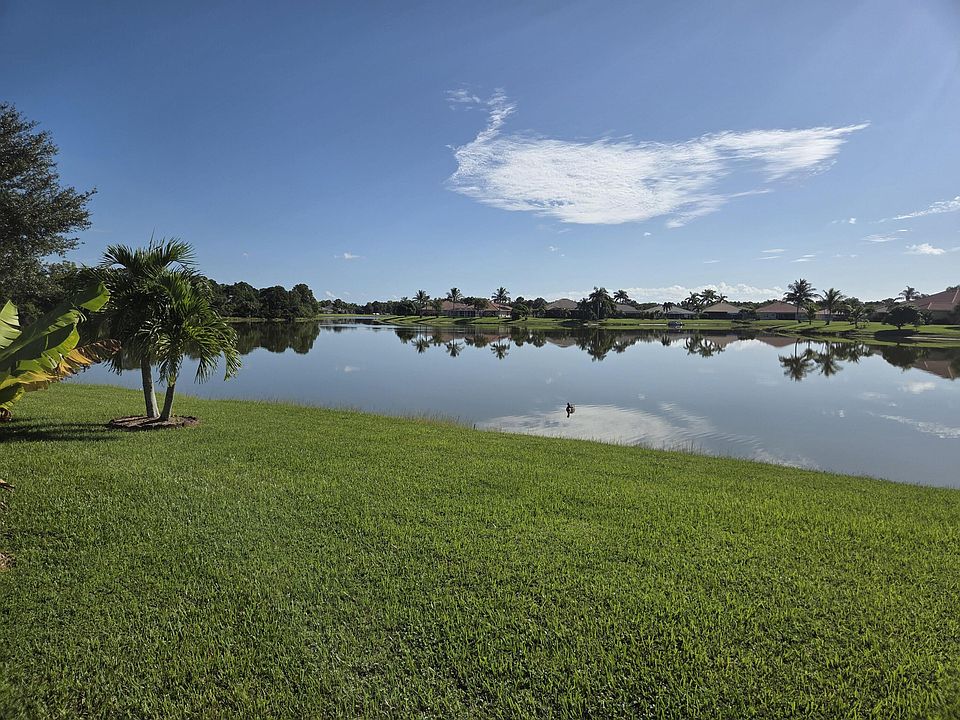 Welcome to the oak tree lined streets of Hammock Cove at Sawgrass Lakes which consists of 450 acres of connected lakes (see aerial) and are navigable with a trolling motor boat. This lakefront gated community of 126 homes features a club house, fitness room and lakefront pool. The home is located between Becker Road and Gatlin Blvd. between I-95 and the Turnpike. The $272 monthly HOA fees include lawn maintenance, internet and cable. The shingle roof was replaced in 2020 and the Carrier air conditioner was replaced in 2019. 10 foot flat knockdown ceilings; save the popcorn for the movies ! The kitchen has wood cabinets, granite countertops and black stainless steel appliances. Over $80,000 in upgrades including double pane impact resista nt glass windows ($30 PSF), tile flooring in all rooms, 20' deep covered porch (standard is 8', see below), side screen porch, upgraded master bath vanity, guest bath/tub is now an enclosed shower, real plantation shutters, security system, glass front door and side lights and a designer stained and etched driveway and entry walkway. The seller is licensed and is an appraiser. The upgrade premium in the list price is approximately 50% of the $80,000 cost because upgrades are given a contribution to value, a not dollar for dollar premium. New water heater and washer/dryer. 475 SW Sundance Trail is the same furnished model home across the street, also for sale by the same owner.