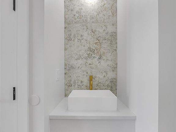 Toward the front of the home, you'll find a stylish half bath with a beautifully tiled sink area just outside. Continue forward into the expansive open dining room, featuring oversized front-facing windows that flood the space with natural light. The dining room seamlessly connects to a generous living room, creating an airy, open-concept layout perfect for hosting.