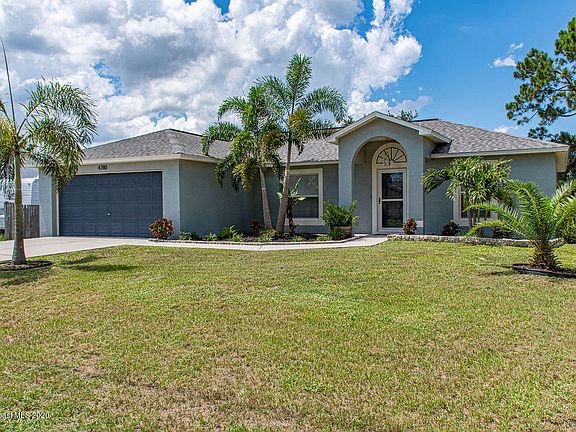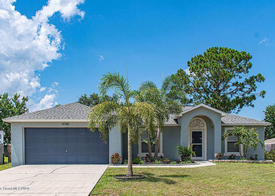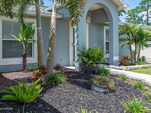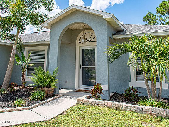 The contemporary coastal style within this open-plan 3/2/2 home will have you falling in love at first sight. Sun-bleached laminate flooring, pendant lighting, vaulted ceilings, and a wood plank accent wall are just a few of the details you'll adore. In the kitchen, stainless steel appliances and dramatic wave-patterned granite create an inviting space for entertaining. Outside, a tiled, screened-in porch overlooks a sizable fenced-in backyard space accented by a grilling deck, tropical landscaping, fire circle, and fabulous playground. Additional desirable details include a devoted laundry/mud room, updated bathrooms, storage shed, a newer roof and A/C. Paradise found!