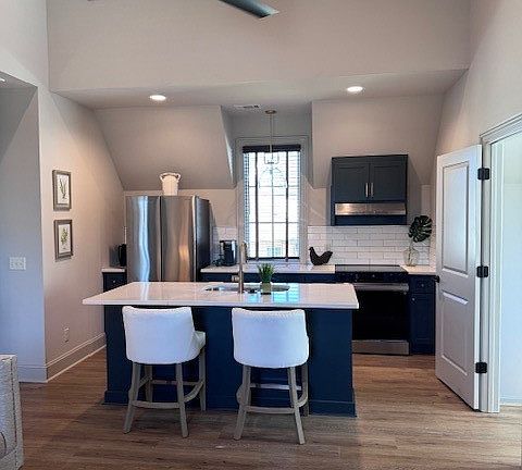 Private entranceFrameless glass shower enclosuresQuartz countertopsLots of lightStainless steel appliancesVaulted ceilingLvp flooring