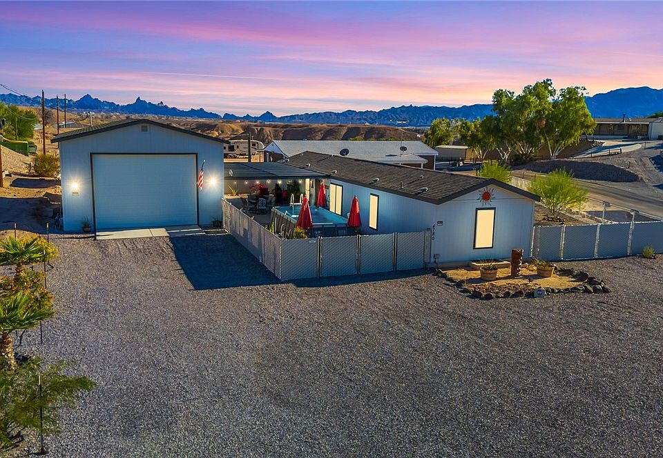 Nestled at 4780 Tonapah Dr in Topock, Arizona, this vibrant 2019 manufactured home screams RIVER LIFE and it s ready to be yours NOW! Picture this: a massive 25x35 RV/boat garage with soaring ceilings, housing your rig or boat, jet skis, and side-by-sides with room to spare all under roof, all year round. Plus, extra gated side parking for the overflow toys, guests, or that dream trailer you ve been eyeing. Summer? Launch straight on to the Colorado River with launches just 5 miles away. Winter? Rip the dunes in your UTV. No more storage fees, no more stress just pure Arizona freedom. Step inside 1,152 sq ft of sun-drenched bliss: three cozy bedrooms, each a private escape begging for lazy mornings and river-soaked nights. Then spill out onto the expansive covered patio your front-row seat to epic sunsets, cold drinks, and echoing laughter. This isn t just a home it s your launchpad to adventure. Homes like this vanish FAST in Golden shores. Call your realtor to schedule your private tour TODAY before someone else claims your river kingdom!