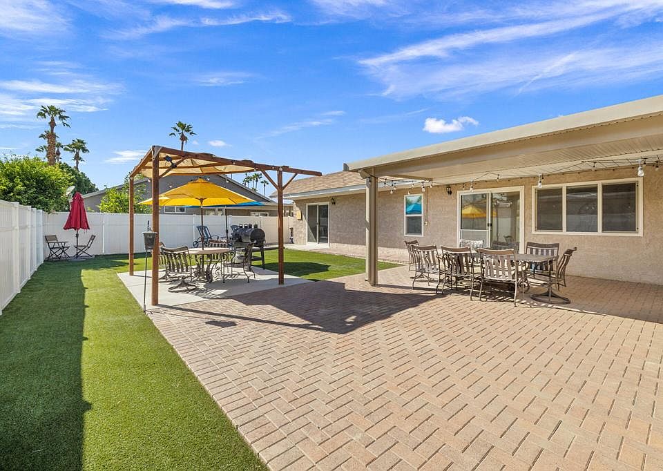 Stylish Desert Oasis with Modern Upgrades & Exceptional Outdoor Living!Discover the perfect blend of comfort, style, and functionality in this beautifully updated 2-bedroom, 2-bath home nestled in the heart of Sunnyside Estates. Move-in ready and thoughtfully designed, this charming desert retreat welcomes you with a bright, open-concept layout featuring luxury vinyl plank flooring, a soothing neutral palette, and seamless indoor-outdoor flow.The remodeled kitchen is a chef's delight, showcasing granite countertops, a spacious island with bar seating, sleek cabinetry, stainless steel appliances, and premium finishes. The primary suite offers direct access to the backyard through sliding glass doors--ideal for enjoying morning coffee or peaceful sunset views. Both bedrooms offer ample space and natural light, and the bathrooms are tastefully appointed with modern touches. Step outside to your private backyard oasis, complete with a large covered patio, low-maintenance artificial turf, and multiple seating areas perfect for entertaining guests or relaxing under the desert sky.Pet lovers will appreciate the custom dog run featuring a shaded area and direct access to the home--comfort and convenience for your furry companions.Located within the gated Sunnyside Estates community, residents enjoy a low HOA and access to top-tier amenities including a sparkling pool and spa, clubhouse, pickleball, tennis and basketball courts, and scenic picnic areas. Just minutes from the iconic Empire Polo Club--home to Coachella and Stagecoach--and surrounded by endless shopping, dining, and entertainment options.This delightful home offers an easygoing, low-maintenance lifestyle with all the perks of desert living. Don't miss your chance to own a stylish sanctuary in one of the area's most desirable communities.