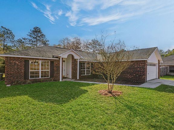 All brick home south of I-10 in a cul-de-sac on 1/3 of an acre. (.35 acre). New Paint and New floors. New roof will be going on before close. As you walk into your home you see your fireplace and French doors that lead out to your patio. Split bedrooms-2 bedrooms and bath to your left of your family room. To the Front of your home is your Kitchen with a large dining room area. Breakfast bar which will accommodate 3 bar stools. Accommodated a large family for your family dinners or holidays. Your master bedroom and bathroom are to the right of your family room. Large back yard that backs up to woods. Great for Family BBQ's. or relaxing over a fire pit. Yes, we have room for a pool! Back on the Market at no fault of the seller