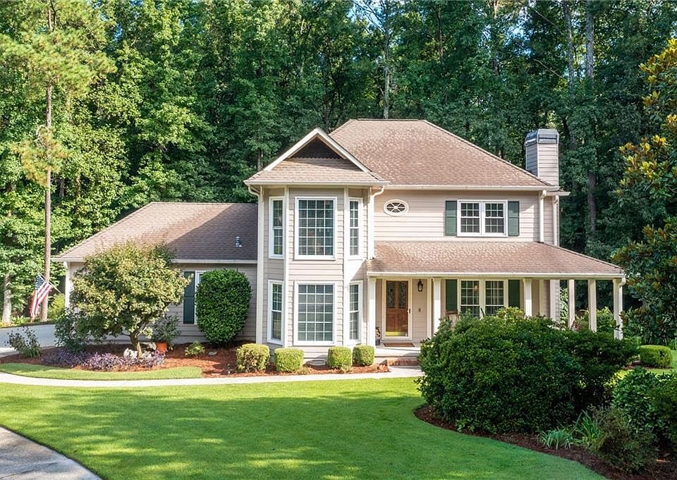 Southern charm meets comfortable living at this beautifully maintained 4-bedroom, 2.5-bath home nestled on a quiet cul-de-sac in Mableton. From the moment you arrive, you’re greeted by manicured landscaping and a charming wrap-around front porch, perfect for your morning coffee or evening unwind. Step inside to discover a bright, inviting layout with neutral paint, abundant natural light, new windows, and hardwood floors throughout the main level. The formal living and dining rooms add classic touches. At the heart of the home is a cozy family room featuring a fireplace flanked by built-in bookcases and direct access to the wrap-around and screened porches for effortless indoor-outdoor living. The eat-in kitchen is a welcoming space with warm wood cabinetry, a stainless steel gas range, a pantry, and a cheerful breakfast nook ideal for everyday meals. A recently renovated half bathroom and main-level laundry room add convenience. Upstairs, retreat to a spacious primary suite with dual closets and an ensuite bath featuring a vaulted ceiling, soaking tub, tile shower, and double vanity. Three additional bedrooms and a full bath provide ample space for family or guests. Enjoy relaxing or entertaining on the screened porch or expansive deck, overlooking a serene, landscaped backyard with an irrigation system, complete with a fire pit and garden beds. A two-car garage provides ample parking and storage space. Best of all, there’s no HOA—offering the freedom to truly make this home your own.