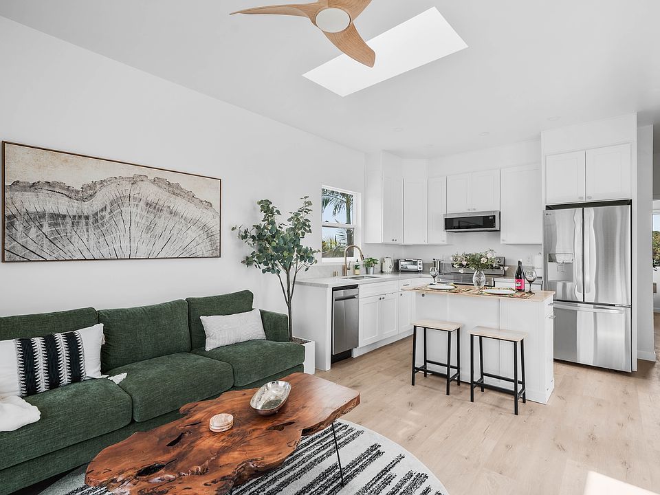 Smart, thoughtful design with 9ft high ceilings, skylight, and modern finishes that make the space feel open and bright.