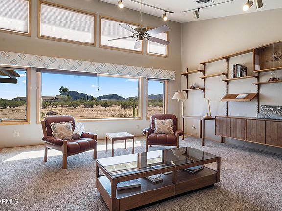 BEAUTIFUL, Extremely well maintained home on 5 acres in a wonderful gated community. Take in the STUNNING views of Eagle Eye Mountain while enjoying your morning coffee in this TERRIFIC home. Fully furnished 2326 sq ft home with covered patios & private hot tub. Ready for you to move in and call it home. Fly in on the 3900' X 40' lighted & paved runway and taxi to your private 50' X 60' insulated hanger. Hanger has (2) 200 AMP service panels, separate bathroom and swamp cooler. So many great things come with this special property.