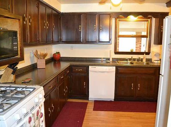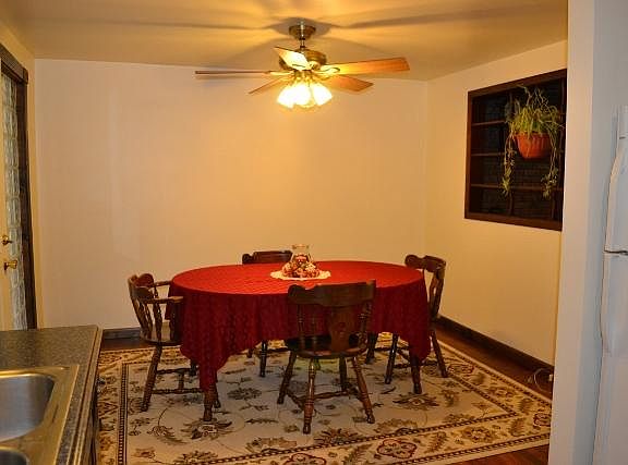 Beautiful ranch featuring three spacious bedrooms, one full and two half baths, kitchen with updated counter and laminate wood flooring, dining room with access to fabulous covered patio and fenced rear yard, ceramic flooring in main bath, hardwood floors, formal living room with wall to wall raised hearth brick fireplace, partially finished gameroom with wall to wall brick fireplace, den in lower level, covered full front porch, one car garage, plenty of parking in driveway, and huge shed.