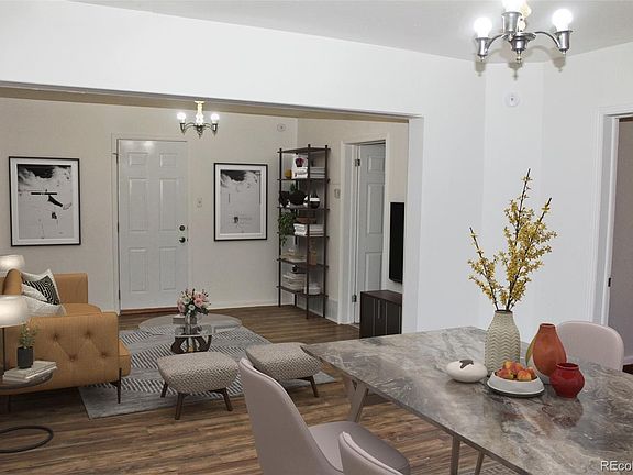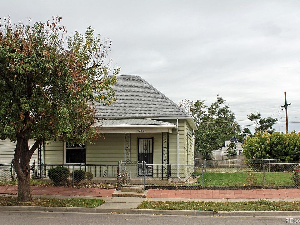 This wonderful home on a huge corner lot has a great location right across from the Johnson Recreation Center and Elyria Park! Close to the Tepeyac Community Health Center, Denver Coliseum and National Western Stock Show too! The covered front porch invites you to come in and relax in the living room and dining room with vinyl plank floors, plus new paint throughout. Cook your favorite meals in the quaint kitchen updated with new counters and freshly painted cabinets. Rest in one of the three cozy bedrooms or enjoy the spacious back yard with a dog run, two storage sheds and views of the mountains. Walk across the street to enjoy the playground, basketball court and skate park, plus daycare provided at the Johnson Recreation Center. Easy access to downtown and close to a new data center currently being built too! Lot size is 7520 square feet and it is zoned E-TU-B.