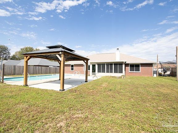 This is a well kept, one owner, 4 bedroom/3 bath home with the kitchen and bathrooms completely updated in the past 2 years. A new roof was installed in 2020. It has a large Saltwater pool and large gazebo in the backyard for those wonderful afternoons entertaining with friends or family or just relaxing. It has a large shed in the backyard for extra storage. The home has an amazing 12x18 Florida Room with heat/air and windows across the back and one side that is not updated in county square footage amount. It would make a great playroom/media/den or whatever you need extra space for. When you walk in, you have a room to your left that could be used as a formal dining or office space. It has a wonderful kitchen/dining with bay window in the dining area. Kitchen has a large pantry for extra storage. The master bedroom and bath with garden tub/separate shower/walk-in closets are on one side and the other three bedrooms are on the other. The entire home has been freshly painted since the owners moved. The Large laundry opens into the garage for easy access from the garage into the home. This home is in a very desired neighborhood that is close to shopping, schools, and 30 minutes from our fabulous beaches and 15 minutes to Pensacola. Call and schedule a tour today.