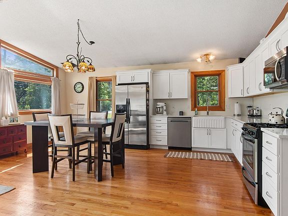 This Home is in a GREAT Subdivision with a Beautiful Setting. It sits on 2 parcels, which together are a little over an ACRE. The exterior walls are 2 x 6 and the interior walls are insulated. The Kitchen is one year updated. The well is 3 years old. Water softener is owned and included. The Main Bathroom shower is one year updated. The Master Bath has a jacuzzi tub. There is a black steel woodburning flu if you want to install a wood-burner. There is an oversized (28 x 35) 2 Car Garage. Both freezers in the garage are included in this transaction. On the north side of the garage is a soft-water hookup (all you need is a hose) and a dumping station for an RV. This house was appraised in July of 2023 for $255,000