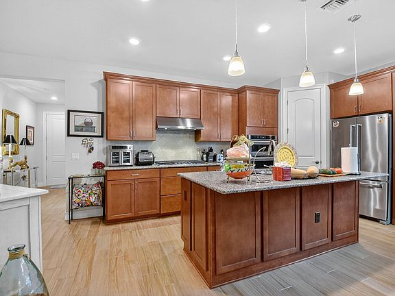 Granite countersNatural gas stoveVolume ceilingsCorner lotWood plank tile floorsWood cabinetsImpact windows