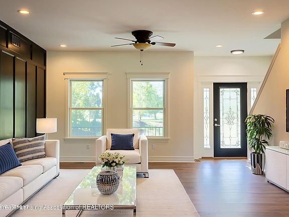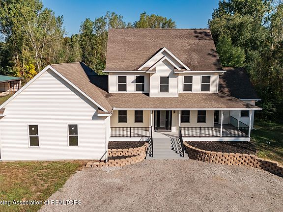 Your private oasis awaits at 4786 Harper Road! Nestled on 10 picturesque acres, this fully remodeled home offers 4 spacious bedrooms, 2.5 baths, and a perfect blend of modern luxury with thoughtful details throughout. Step onto the charming covered front porch and into a welcoming living room, complete with a sleek black accent wall and glass doors that open to the outdoors. The gourmet kitchen is a true showstopper, featuring a massive island, stone backsplash, stainless steel appliances, and a planked wood ceiling that adds warmth and character. A walk-in scullery pantry provides exceptional storage and prep space, while the main-floor laundry includes a convenient tiled dog-washing station. A custom drop zone sits just inside the attached 2-car garage, making everyday living effortless . The main-floor primary suite boasts vaulted ceilings, a spa-like en suite bath with double sinks, a walk-in tiled shower, and generous walk-in closets. Upstairs, you'll find three additional bedrooms and a full bath with double sinks and a separate shower room. Outside, a circular driveway leads to a massive pole barn with lean-tocomplete with an unfinished apartment area that's ready for your vision. With space to grow, entertain, and relax, this property offers endless possibilities.