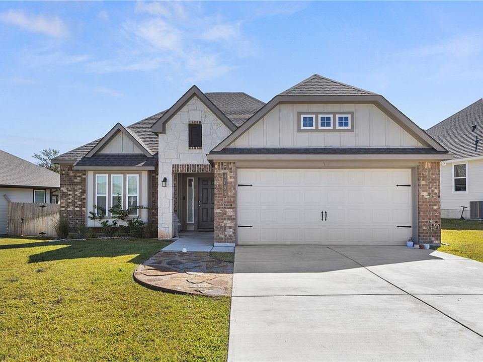 ***MOVE-IN READY! REFRIGERATOR + WASHER + DRYER CONVEY WITH ACCEPTABLE OFFER!*** This Yaupon Trails charmer is situated on a spacious lot and, as a bonus, mature trees behind the back fence provide a natural privacy buffer! There's also a path at the end of the cul-de-sac that offers quick and convenient access to the community's pond and trails! (The neighborhood pool and park are currently under construction!) The kitchen features stainless steel appliances, plentiful counter space and storage, an oversized eat-in island, and a passthrough to the main dining space off of the entry. The kitchen overlooks the roomy living area that abounds with natural light. The primary suite is also filled with natural light and the primary bathroom includes a soaking tub, walk-in tiled shower, dual sinks at the vanity, and a large walk-in closet! Vinyl plank flooring throughout the main areas of the home, tile in the wet areas, and carpet in the bedrooms. Granite countertops throughout the home and numerous upgrades including additional cabinetry added in both the primary and secondary bathrooms, extra LED recessed lighting, and integral blinds in back door. Conveniently located only minutes to Texas A&M University, Blinn College, Historic Downtown Bryan, retail, restaurants, and medical facilities! This one checks all of your boxes...schedule your private showing today!