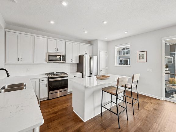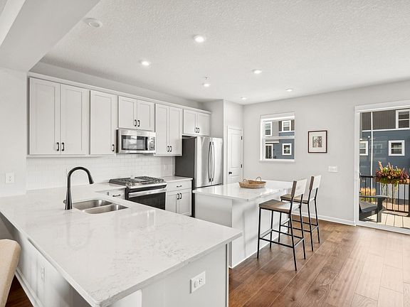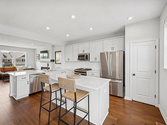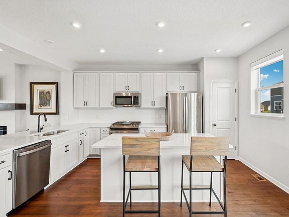 Welcome to the "Avery" floor plan in demand Woodland Cove. Spacious open main floor plan with stainless steel appliances, quartz countertops and hardwood floors thru out, includes a finished lower level. Association maintained featuring two pools with clubhouse, and coming soon outdoor pickleball and tennis courts! Miles of trails for walking and biking, and many play areas. Down the street from Halsted Bay, Lake Minnetonka Regional Park, Big Stone Mini Golf, Lowry Nature Center Park Preserve, and the new Mackenthun's grocery and wine shop, with a drive up Caribou!