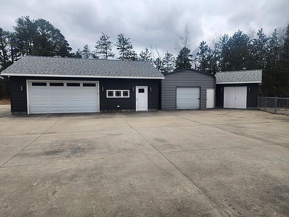 This home is a one of a kind. Newer kitchen cabinets and stainless steel appliances, Corian counters with snack bar. This home comes with Generac generator, ADT Security. Siding, gutters, water heater, furnace, windows, roof, AC, all newer as of 2018-2019. Use to 2 stall attached garage as a garage or make it your 4 season room. The floor was done by Absolute Concrete and heated with electric fireplace and has surround sound stereo set up along with screen on garage. Several outbuildings for your storage needs. Large circle drive with lots of room for RV's, Boats, etc.