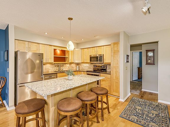 2023: Created open-plan kitchen, added center island. Kitchen features granite countertops and birch cabinets. Also created main floor laundry and upgraded living room blinds.