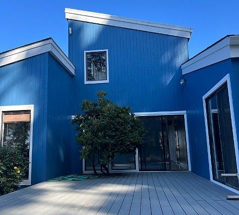 For Rent is a 3 bedroom and 2 bath, 5-acre oasis atop English Hill in West Sebastopol. The property is available for you to live in and work from, with breathtaking views from every window. The house includes an open space loft for a work-from-home lifestyle. There are Vaulted, exposed beam ceilings, new floors, and a remodeled kitchen with premier stainless-steel appliances. The master bedroom is located at one end of the house. It includes plenty of storage space, a newly remodeled master bath with full shower/tub and built-in shelving. The two other bedrooms and second bathroom are at the other end of the house. The bathroom includes a full shower/tub and a pedestal sink. Each bedroom includes its own closet. There are two separate decks: one adjacent to the kitchen; the other adjacent to the main living room. The property is landscaped with mature trees and includes garden boxes ready for you to plant and grow your own plants or veggies. There is a carport attached to the home with entry into the kitchen. The laundry room includes a Speed Queen industrial washer and dryer, and many shelves. The property is near world class wineries, famous restaurants, and craft breweries. You will be off the beaten path at your own private sanctuary. One year lease required. Tenant responsible for all utilities. Water is paid on a semi-annual basis to a private water company through the property owner.