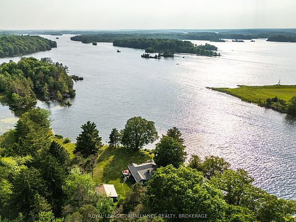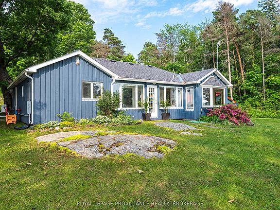 Welcome to your dream getaway or full-time family home nestled on over 4 acres of natural beauty on sought-after Cranberry Lake, part of the historic Rideau System. This well-loved 4 bedroom, 2 bathroom home offers the perfect blend of rustic charm and modern conveniences all with an unparalleled view both south and west on the lake to enjoy as much natural light as possible. Surrounded by majestic trees, the property features flat, open areas ideal for family games and outdoor activities, while offering complete privacy from neighbours. Whether its cozy nights around the fire pit, enjoying the hot tub or afternoons playing catch with the kids, this property delivers an unmatched lifestyle. Step out onto the expansive Brazilian Ironwood deck, perfect for entertaining or relaxing as you take in breathtaking sunsets over the lake. With an additional outbuilding set up with your 5th bedroom and bonus living space that could just as easily be used as a detached studio or office space, you are not limited by what this property has to offer. For those who truly embrace the rural lifestyle there is an oversized 2 car garage that can be used for cars, or more importantly, all your additional toys that inevitably arrive while living on the water. You don't need to worry about hidden costs that may come up as the roof has recently been replaced, patio doors updated, as well as the deck and Bunkie being updated all within the last couple years. The high speed internet and just a short 20 minute drive to Kingston while also being within Kingston city limits and on a school bus route really allow you to pick how you would like to use this property to suit your needs. Whether you're looking for a peaceful retreat, a place to host family and friends, or a permanent residence close to nature and town amenities this property offers it all. Your lakeside lifestyle awaits!