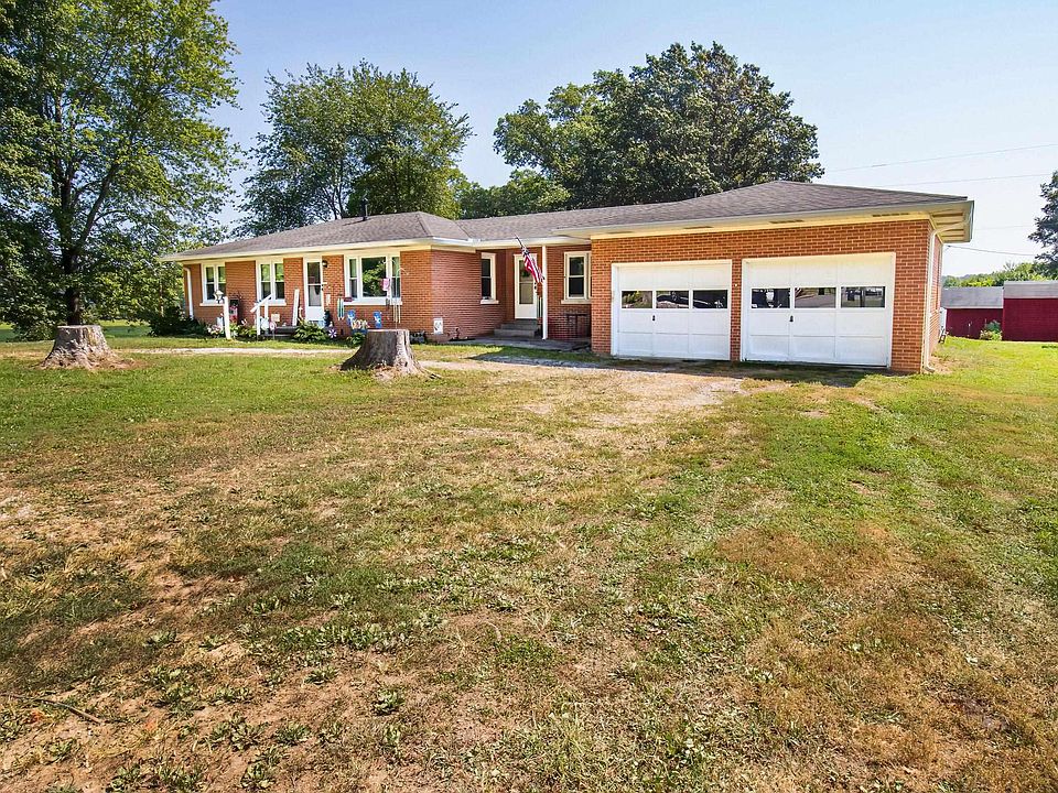 Full Brick, well maintained, one story home with basement on 3.21 Acres, 30 x 24 barn with electric, 2 car attached garage. Hardwood floors in Living Room, Hall and 3 bedrooms. Kitchen has brand new stainless appliances: Gas Stove, Refrigerator, Dishwasher needs to be installed. New leaf filter gutters, Replacement windows 6 years ago. Laundry hook ups in kitchen and also in basement. Bonus room on main level could be dining room, 4th bedroom or office and has an outside entrance. 5* security system. Nearly 1400 sq ft. 3/4 Unfinished basement with 2 sump pumps. Septic was pumped April 3, 2024. Sold AS IS! Inspection report is on mls documents.