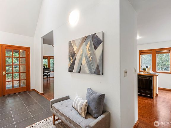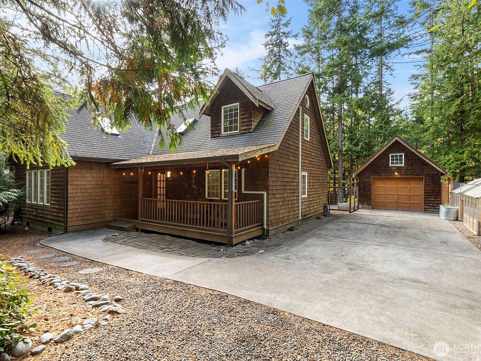 On the edge of Cappy’s Trails, this Craftsman home sits in the sought-after Bell St. neighborhood. Thoughtfully updated w/ 4 new mini-splits & renovated primary bathroom. Main-level primary suite offers comfort & convenience. Vaulted ceilings & skylights fill the living spaces w/ natural light. The wood stove creates an inviting atmosphere. Upstairs, you’ll find 2 add'l bdrms—perfect for guests or home office. Fully fenced backyard w/ raised garden beds, established blueberries & 2 greenhouses—ideal for year-round gardening. New Trex deck. Detached garage provides extra storage or workshop space. Short stroll to trails & views of the Salish Sea. This home offers the perfect blend of charm, comfort & location!