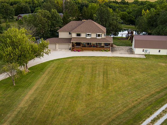 Welcome to your private slice of country paradise! Nestled on 2.41 acres, this spacious and well-maintained home offers the perfect blend of rustic charm and modern comfort. Enjoy peaceful mornings and scenic views from the expansive wrap-around composite deck, or cozy up beside one of the three stone fireplaces throughout the home. Inside, you'll find beautiful hardwood floors, an updated kitchen with custom cabinetry, a large kitchen island, and Andersen windows and doors that fill the space with natural light. With 5 generously sized bedrooms and 3 1/2 baths, there's ample room for family and guests. The spacious master bedroom features a stone fireplace, full bathroom, large walk-in closet and access to a private deck. Laundry room conveniently located on the 2nd floor near the upstairs bedrooms. The finished basement offers additional living or entertaining space, perfect for a home theater, gym, or game room and a built in sauna. Other interior features include 6" baseboard trim and 9' ceilings throughout the home. Car enthusiasts and hobbyists will love the 4-car attached garage, plus a 2-car detached garage featuring a heated and cooled space with 2 additional bedrooms and a full bath - ideal for guests, a home office, or a studio. An additional pole shed provides even more storage for vehicles or outdoor equipment. Never worry about losing power with the whole house backup generator. With a shared pond perfect for quiet afternoons of fishing or relaxing by the water, this property offers country living at its finest - just minutes from town conveniences. Don't miss this rare opportunity to own a this country home!