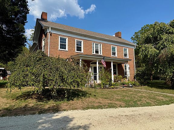 A house out of a fairytale, this enchanting 1800's Colonial-style home overlooks Laughery Creek with 300' of creek frontage. Boasting just under 3000 sq ft, this showpiece features hardwood floors, 6 fireplaces, and exquisite trim that only historic homes have to offer. Nestled in the country, it's a historic home lover's dream. The stunning outdoor space includes lush gardens, creek access, a cozy outdoor living area, freshly painted wood exterior, fruit trees, and a heated detached 2 car garage perfect for a workshop or storage. Brand new roof on the home and garage. Embrace timeless elegance and serene country living in this captivating property for everyday living or weekend oasis.