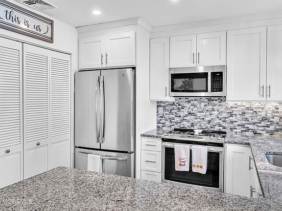 What a lovely, updated unit! Care and modern touches are everywhere to be seen. Kitchen has been extended by one foot and has SS appliances, granite counter tops and glass tile backsplash. Cabinets have undermount lights Recessed lighting throughout. Three ceiling fans and new windows and doors. Heat pump will keep you comfortable while keeping costs down.