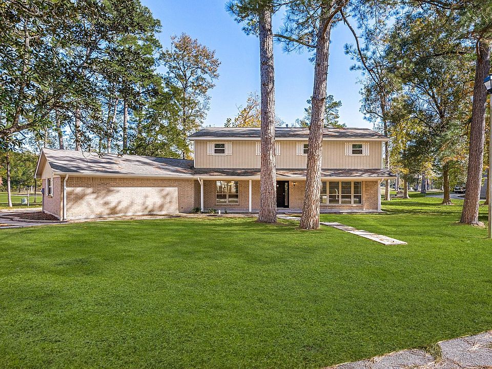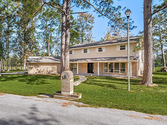 Two-Story Home on the River Plantation Country Club Golf Course! This spacious 5-bedroom home features three full baths and two half baths. An inviting extended front porch spans the width of the home and creates a warm welcome. The entry opens to a formal dining room that flows seamlessly into the kitchen. Enjoy a bright, spacious living area with a charming bay window, complemented by a second living space featuring an open wood-burning fireplace. The kitchen showcases white cabinetry and granite countertops. The primary suite includes an updated bathroom with granite countertops, dual sinks, and a large walk-in closet. There is a large sunroom perfect for enjoying your morning cup of coffee. Additional highlights include a huge mudroom and a 2-car garage. Conveniently located 20 minutes from Lake Conroe, 15 minutes from The Woodlands, and close to downtown Conroe’s dining and entertainment with easy access to I-45 and Bush Intercontinental Airport. Zoned to Conroe ISD!