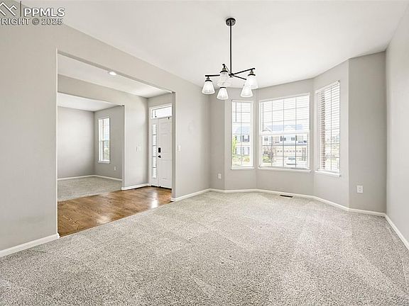 You've found your Colorado dream home! This lovely 5-bedroom, 4-bathroom home situated on a large corner lot offers a Pikes Peak/front range view in addition to a warm & inviting open floor plan perfect for entertaining. You'll instantly love the curb appeal with a fully-landscaped yard & well-maintained exterior. Upon entering the home, you are met with a large foyer, gorgeous hardwood flooring, a great room that has soaring ceilings & large windows that provide a bright & cheerful space full of natural sunlight. In the colder months, you can grab a good book & get cozy by the fireplace that is centrally located in the great room. The gourmet kitchen is ready to meet your culinary needs with stainless steel Bosch & Frigidaire appliances, a double oven plus a cooking range on the center island, beautifully-handcrafted maple cabinetry that provides excellent storage, granite countertops, a study/homework area, & an additional eating space that leads out to the patio & deck overlooking Pikes Peak & the front range. Ascending the staircase, you'll see that it is open to the lower great room, & the primary suite is a true retreat with a spa-like bathroom featuring double vanities, walk-in shower, oversized tub, & a spacious walk-in closet with hardwood flooring. There are 3 additional bedrooms upstairs that have large closets, & there is 1 full bathroom located between bedrooms 3 & 4 & across from the laundry room. The walkout basement with its own fireplace & kitchen/wine bar area & extra bedroom/bath is perfect for you to host guests & watch movies in the theater area, & there's even plenty of space for you to have a gym & office area. There is also a 3-car garage with enough room for your toys or storage & NO HOA! Fully enjoy the Colorado lifestyle by being close to I-25, hiking & biking trails, shopping centers, restaurants, & an easy commute to the Air Force Academy. Make this stunning home yours today by setting up a showing ASAP! It won't last long!