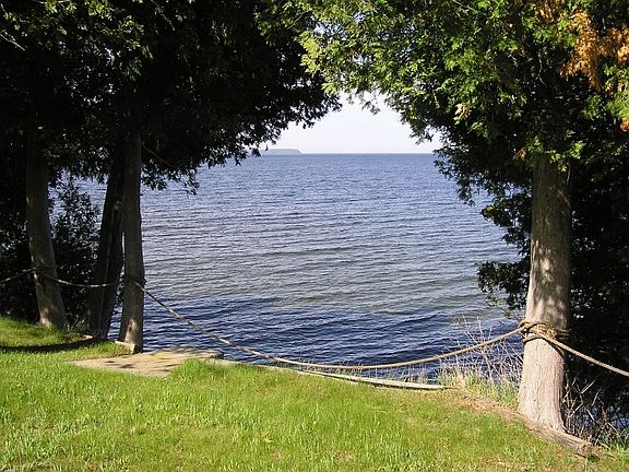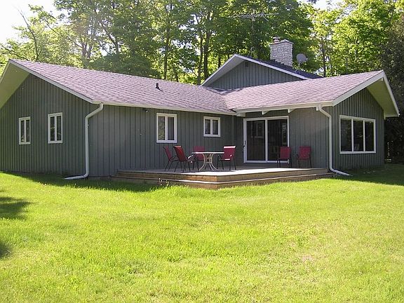 This shore home is located on the coveted west side for prime sunset viewing. Own this home and be surrounded by sounds of nature. Trees whisper their age-old songs to the tune of the wind. Water laps rhythmically at the stone beach, bringing a sense of calm. There is the awakening of spring, the sweet scents of summer, fall's rich colored carpet, and winter's hush. This spacious home offers a large living room with open kitchen and counter seating plus a formal dining area. Large windows bring in natural light and views toward the lake. A fireplace will take the chill out of spring and fall. In winter enjoy the added warmth and ambiance. There is a main floor master bedroom with private bath. Ask about the second floor bonus living area!