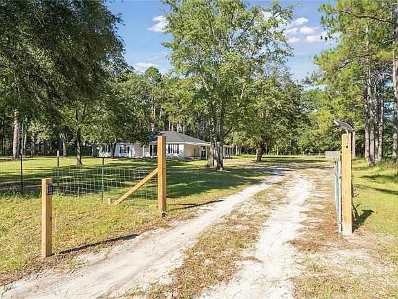 The roof is 1 year old. There is a new 20X25 barn storage building and a fence with an electric gate and keypad entry. The move in ready home is inviting with a large wrap around porch providing outside living space and spacious rooms. There is an eat in kitchen with an island, stainless steel appliances and a separate laundry room with a pantry, cabinets and a utility sink. The large dining room off the kitchen can serve as a den, office, play room, billiard room or any flex space you can imagine. There is a primary suite with an adjacent room that can also serve may uses. The large metal building is another space to fit your needs for storage or work space. Acreage stretches to Emilie Lane. RR-1 zoning, limited non-commercial agricultural activity is permissible subject to all zoning restrictions. So many possibilities with this 2.5 acre property in Ellabell close to Hwy 204, I-16, and Savannah.
