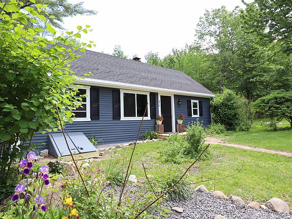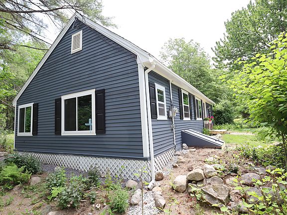 When you walk into the house you immediately feel warm and welcome. The beams are the star in the room! With a spacious open concept main living area a new wood stove keeps the house feeling cozy. The updates are top to bottom. New laminate floors flow throughout along with pine ceilings. The kitchen boasts a 6 ft butcher block island, new cabinets and appliances. The bedrooms are at each end of the house, the main one is amply large with lovely views of the backyard while the other is quaint with custom built in shelving. The sitting room is perfect for reading, relaxing or watching the wildlife frolic in the grass. Sun light shines through the newly replaced windows at all angels. Every view is truly beautiful in this absolutely adorable home!
