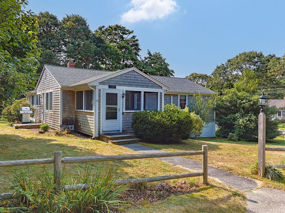 Welcome to Cotuit! This lovely home sits just outside of the Village. It offers easy one floor living. Sit and relax in the gorgeous sunroom off the kitchen, with wainscoting, wood stove, and mini split A/C. Large living room with built-ins, with access to the screened porch with ceiling fan, (bring out the playing cards). Down the hall is a large full bath with deep closet. Primary bedroom with walk in closet, ceiling fan, and mini-split A/C. 2nd bedroom with washer/dryer hook ups and 1/2 bath. Walk up attic, Town water, Gas heat, Roof/Gutters new in 2018, Mini-splits 2022. Convenient to so many Unique Cotuit Attractions for all ages. 182 acres of conservation across the street at Eagle Pond and Little River Sanctuary, Cotuit General Store, Kettleers baseball games at Lowell Park, sailing with the Mosquito Yacht Club, Cahoon Museum, Cotuit Center for the Arts, (offers plays & Events), Library, Kettle Ho Restaurant, Cotuit Oyster Company, and Gorgeous Loop Beach. And Mashpee Commons with shopping, movies, and restaurants are only a few miles away too. Come see the beauty of life in Cotuit!