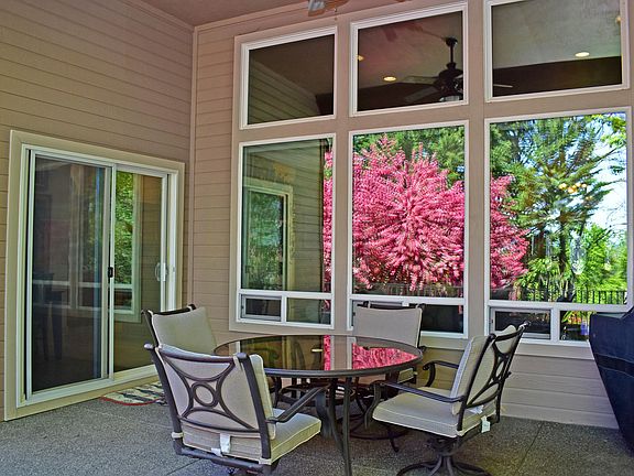 Enter this beautiful Eagle Point Golf Course home & be drawn in by large picture windows framing sweeping mountian views! The classy exterior & perfectly manicured front lawn leads you to a grand entry with tons of natural light. This perfectly maintained 3b/2b home has 2174 sq ft, real wood flooring & tile, soaring 10ft & 12ft ceilings, 3 car finished garage with pull down storage, & RV side parking with dump & electrical. Spacious open living area has gas fireplace, open concept to kitchen & formal dining area! Breakfast area has patio access & more views! Eating bar, pantry with etched glass, recessed lighting over & under cabinets, & lots of storage complete this roomy kitchen! The primary suite features patio access, walk-in closet & a luxurious bathroom w/ soaking tub, oversized shower, separate water closet, & views! Elegant archways, arched windows, several ceiling fans, tall ceilings, & split floorplan make this move-in ready home a must tour!. Appointment only.