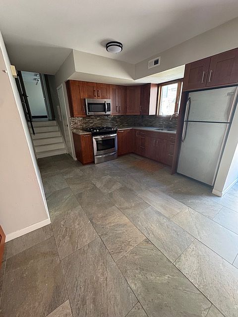 Street level 1 bedroom apartment with all modern kitchen appliances in one of the most desired areas of Staten Island. Separated living room with lots of windows, large windowed eat-in kitchen with plenty of cabinets and modern stainless steel appliances, tiled bathroom, step up to a large bedroom with a well-designed and compartmented closet on one side and a wall of mirror on another side. This is truly a rental gem for a lucky tenant.