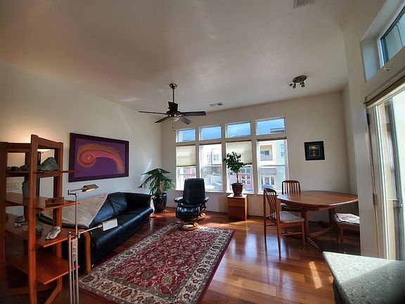 One of Ashland best kept-secrets this light and bright affordable loft-like home with mountain views is adjacent to the sought after Rail Road District in the heart of Ashland. The 5 unit complex offers an elevator from the parking area +private and owned locked storage on the ground level. Beautiful Teak hardwood flooring, high ceilings, Ceasar Stone counter tops, complete window coverings and deck with view completed with roll-out retractable awning makes this a unique home