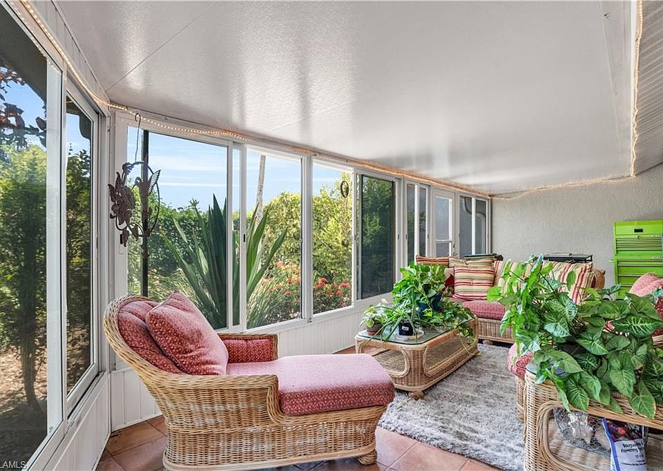 Step into 479 Saint Andrews Blvd in Lely Country Club, Naples, Florida, a private garden retreat with extensive outdoor space overlooking the water. It is a unique must-see property on an oversized lot located near award-winning golf courses, dining, shopping, and only 10 minutes from the World Famous National Pickleball Center. This charming home has two bedrooms with an oversized den that can easily be converted to a 3rd bedroom, 2 bathrooms, 2 car garage, and a separate bonus room. The large enclosed lanai / sunroom offers additional living space overlooking the private gardens. Enjoy the fresh air with the screened windows open, or add a split a/c and have an additional 150 square feet of living space with beautiful views of the lake. This is the perfect home for entertaining, garden parties, or your very own private getaway. The entire yard is fenced in offering a safe haven for your four legged friends. The home has extensive tile work and built-ins throughout. Rentals are allowed up to 4 times a year. The community pool is just a short walk away. The owners installed a Culligan Water System and a brand NEW roof in 2024.