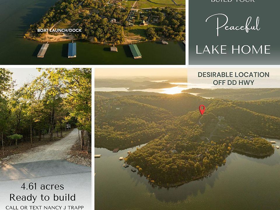 Panoramic Table Rock Lake views! Build your secluded Lake Home on this property and you will have a magnificent homestead. Discover your turnkey home-building opportunity just 12 minutes down DD hwy-perfectly situated between Kimberling City and Branson West, just minutes from all Branson has to offer. This peaceful 4.61 acre site offers quiet, scenic surroundings with well-maintained county road access-ideal for your dream home!Key features:*CERTIFIED to ''perc'' with valid public health approval for conventional septic system*Durable gravel road ready to support your builder's equipment*Identified water well site for easy installation*Convenient White River Electric easement agreement already in place*Wooded acreage with many Oaks, Maple, Hickory, Redbuds, Dogwoods and CedarsLand like this is rare in the area!Imagine waking up each day to breathtaking panoramic lake views of Little Indian Cove, Indian Point Marina, the Main Channel, the Chateau on the Lake, plus beautiful mountain vistas. Nestled privately next to established lake communities like Carriage Oaks, Splitrail, and Little Mountain Estates, this property is the perfect canvas for a walk-out home, barndominium, or whatever your vision may be. NO HOA fees or restrictive CC&Rs to worry about. Enjoy miles of scenic walking and golf cart trails, plus peaceful hikes down to a wet-weather creek and TABLE ROCK LAKE SHORELINE.Water enthusiasts will love the multiple nearby access points just down the lane. Boat slips and launch ramp available near by from a 3rd party.Conveniently located off the exit for Sho-me Baseball Camp, this site offers both tranquility and easy access to amenities.