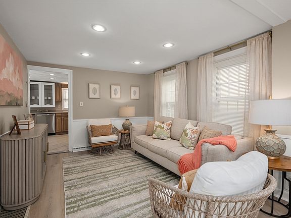 Quintessential charm meets modern day living in the heart of old North Andover. This is truly the sweetest property for new owners to be home for for holidays! Warm and inviting entryway into a seamless open concept floorplan. Entertaining ease with a combined living and dining room, thoughtfully designed space. Built ins and beautiful natural light add to the comfortable vibe in the main living area. Kitchen is well sized with french doors to freshly painted wrap around decking. Outdoor area is neat and tidy, fenced in and low maintenance. Bedrooms with vaulted ceilings and wood beams create a uniques backdrop for your decorating ideas. Full bath completes the 2nd floor space and has more added charm. Crisp, neutral freshly painted interior and central air are a bonus! Commuter friendly location and nearby to all that the vibrant North Andover community offers. Single family turnkey homes under 500K are few and far between in this sought after town!